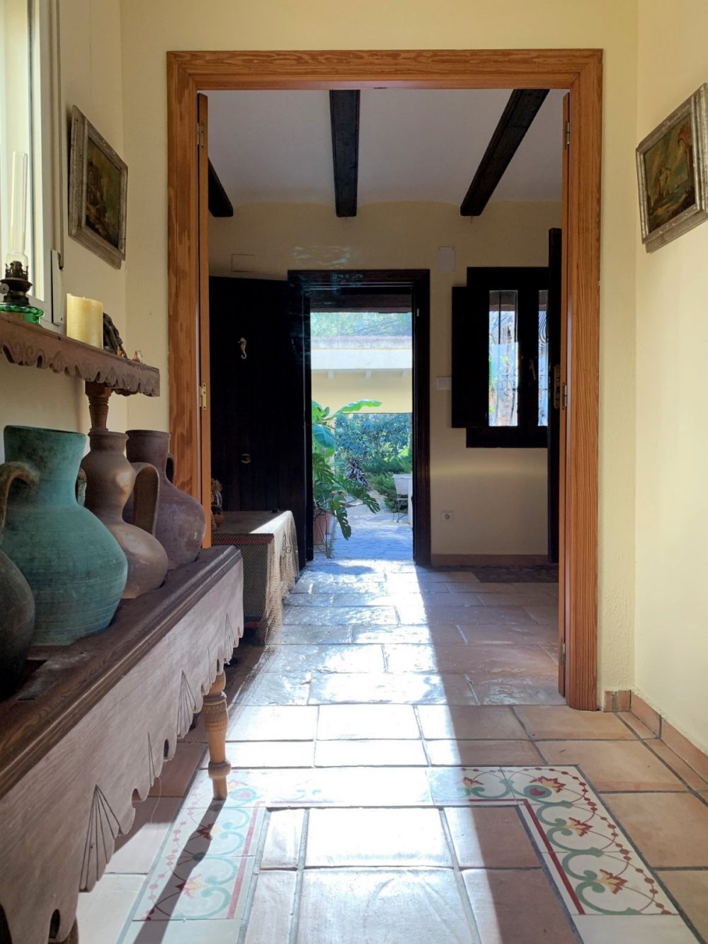 Tres portales se abren a los caminos cruzando el bosque hasta la Finca. A través de su pintoresco patio se entra a la parte rústica de la propiedad, reconstruida en 2002 en un estilo auténtico luciendo anchas paredes, techos altos con bonitas vigas y materiales selectos. Aquí hay un gran espacio diáfano con hall, salón y comedor y un cuarto de ducha. Junto a él está una coqueta cocina recién instalada, un gran dormitorio con su atractivo baño en-suite. Llegando a la parte moderna se encuentra un amplio y elegante cuarto de baño con bañera y ducha yet, dormitorio, pequeña bodega y acceso al garaje y lavadero.
